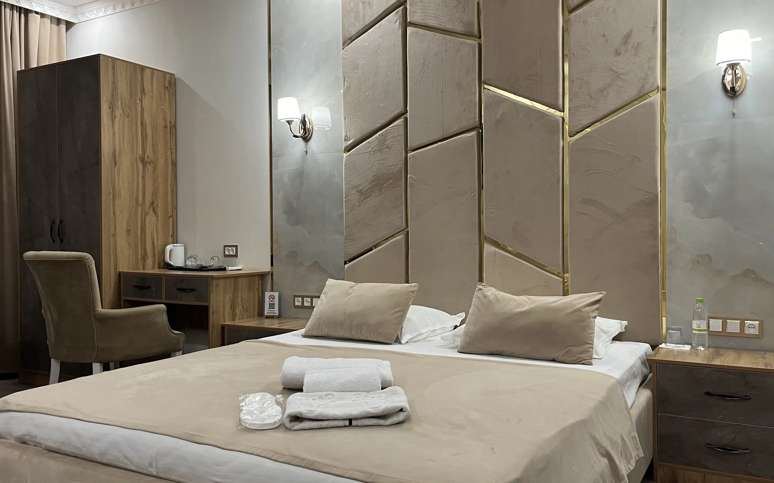 Sharq Hotel — это современный и уютный отель, расположенный в самом сердце Ургенча. Мы предлагаем идеальное сочетание комфорта, гостеприимства и высокого уровня сервиса. В нашем отеле вы найдёте всё необходимое для приятного отдыха и продуктивной деловой поездки: комфортные номера, вкусный завтрак «шведский стол», бесплатный Wi-Fi и доброжелательный персонал, готовый помочь вам в любое время....
